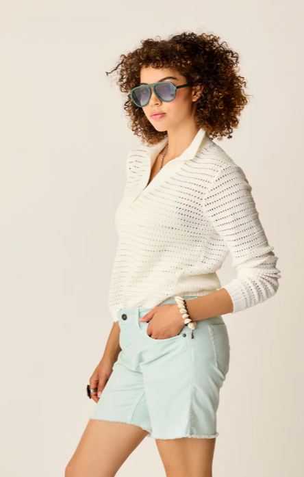 Whether swinging the old polo mallet or sippin’ chard poolside, the Morgan elevates your game, by keeping it classy. You’ll stand a little taller as her relaxed fit, collar & front placket, open airy stitch, and rib hem boost confidence with every savory step.